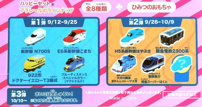 毎年恒例マクドナルドのハッピーセットのプラレール。