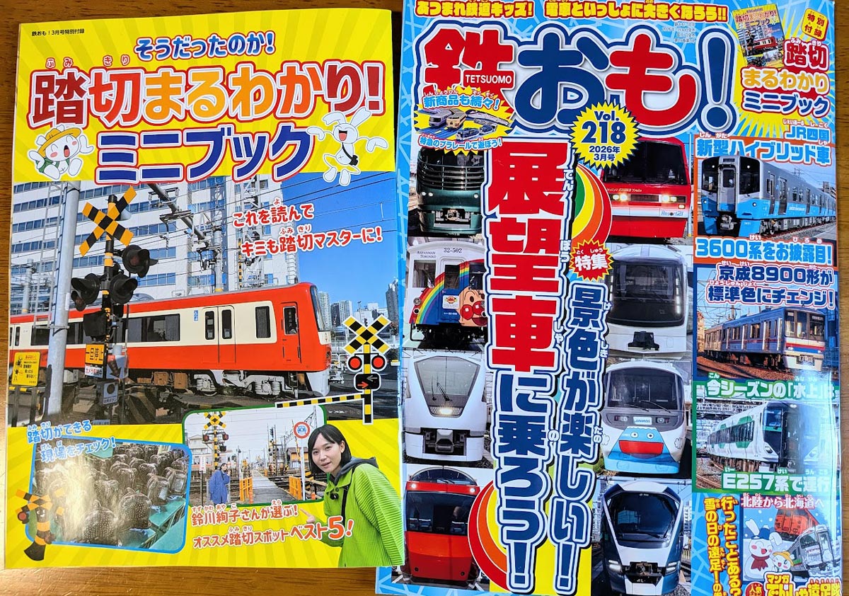 作った鉄道雑誌「鉄おも!」218号にマンガを描きました/雪の日遠足編 作った X Facebook0 はてブ0 LINE コピー コメント 2026.02.06記事内に広告が含まれています。1月30日発売の雑誌「鉄おも!」2025年03月号(Vol.218)に連載中の「マンガでんしゃ遠足隊」最新話を描きました。今月は「行ったことある?雪の日の遠足!の巻」と題して、北国へ雪を求めて四苦八苦した遠足エピソードです。付録の「踏切まるわかり!ミニブック」は、全国の個性的な踏切から専門用語まで学べる、マニアックなふみきり本です。東邦電機工業さんの踏切キャラクター(RCくん)や鈴川絢子さんもご登場。うさお&ちびうさもお邪魔させてもらっています。鉄おも2026年3月号 Vol.218【付録:小冊子「踏切まるわかりミニブック」】ネコ・パブリッシング Amazonの商品レビュー・口コミを見るAmazon楽天